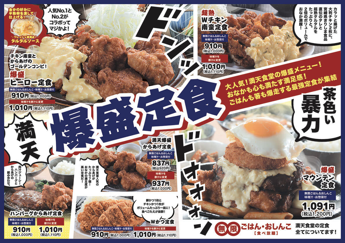 爆盛り定食メニュー